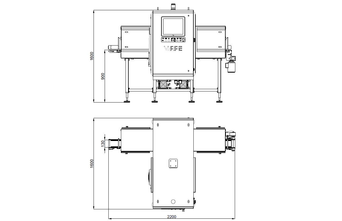 The IRIX DLV AXIS X-ray product inspection equipment features a double vertical side shot, a type of geometry that uses two generators. This type of inspection is especially suitable for cases in which the variability of formats and types of products is unavoidable, for example, in a factory that prepares pre-prepared products (tall cans, low cans, etc.).
